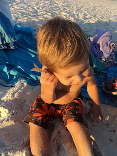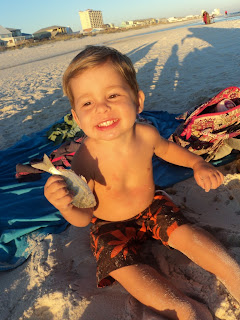 The boy is completely obsessed with fish, so much so that even I think he is weird. He has to have a fish in his hand most of the time while on the beach: