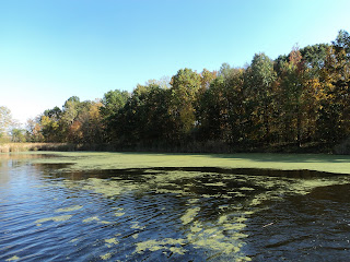 Very cool old burrow pit tucked back in the woods and some point in the last year or so all the fish died out of it. The reason I think the fish kill was recent was because there werent many frogs or tadpoles. Ponds void of fish usually teem with other forms of life that fish like to eat...Also the owner said he saw some fish swimming in it last summer...