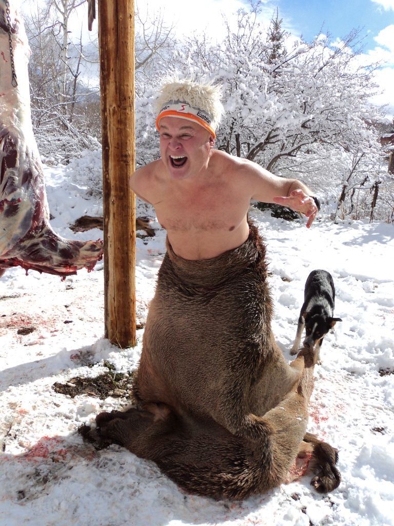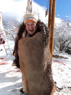 For those who don't know Edwin, he is a 17 year old trapped in a 53 year old body! He is borderline crazy, and always the life of the party. This elk skin was just a few minutes removed from the elk and still nice and warm: