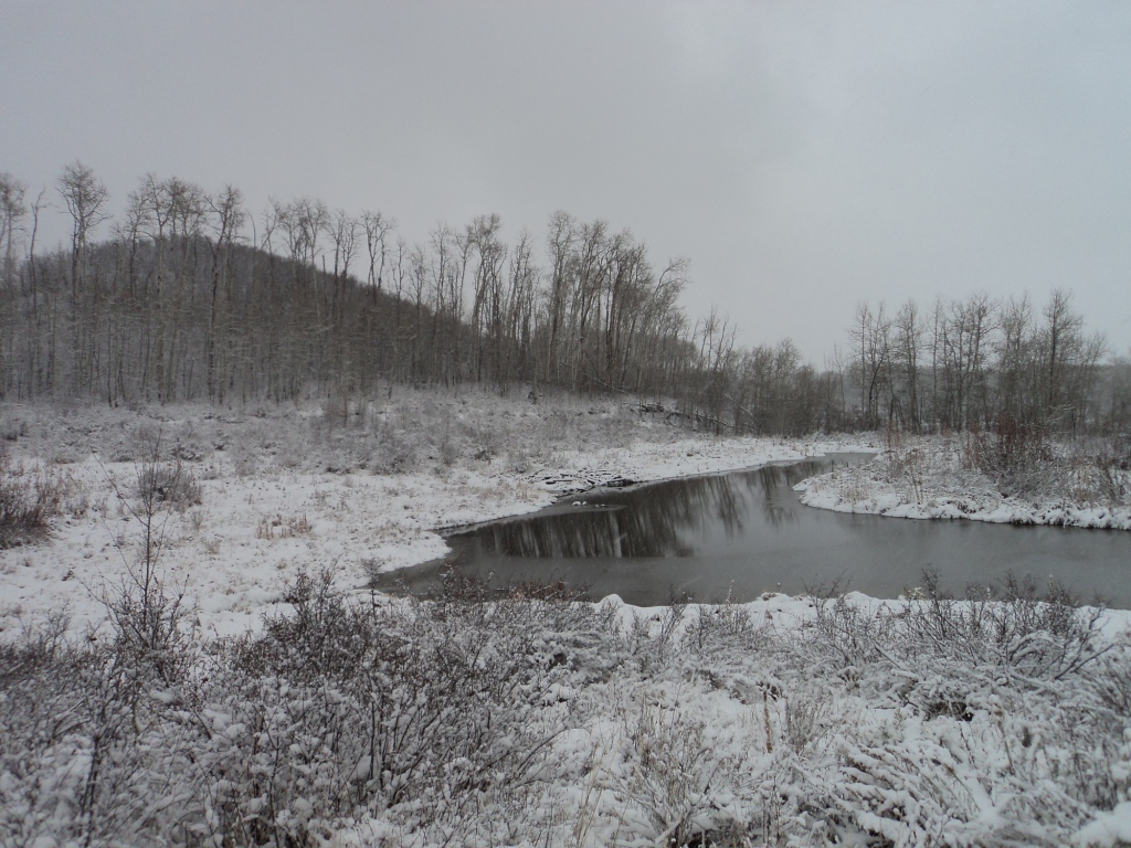 I went out by myself again that afternoon and walked 1.5 miles up the most scenic old trail you can imagine! About every 150 yards I would come across a clearing littered with beaver dams and small ponds. By then the wind had come to a screaching halt and the quiet heavy snow was just breathtaking unbelievable.