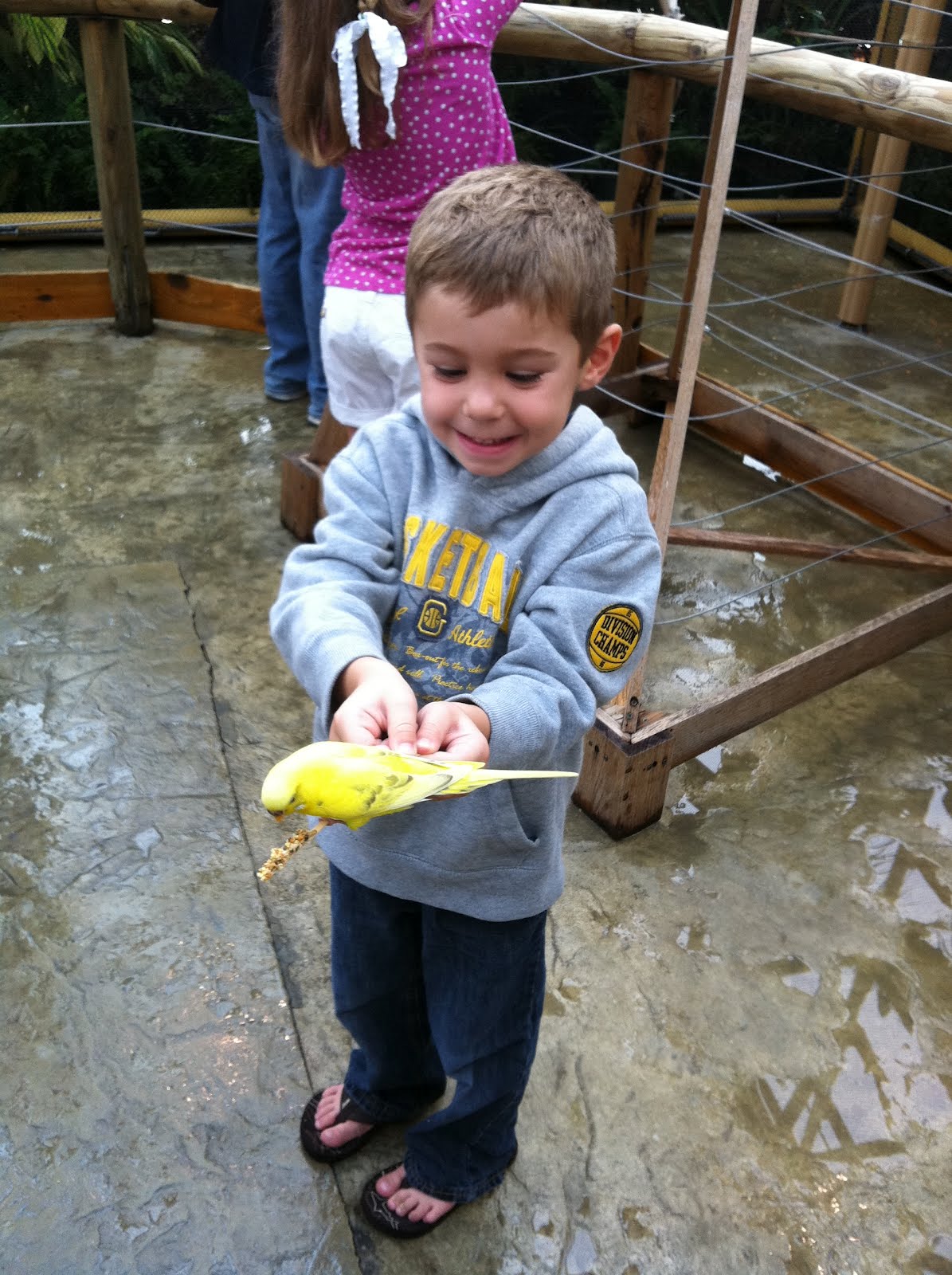 The aquarium had a bird exhibit that the kids loved! For $1 you could feed the birds with a bird seed stick: