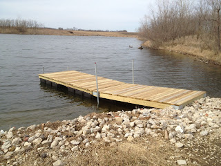 We built a simple, but cool floating boat ramp dock on Tuesday out in Elmwood. It only takes one day for us to build and install docks of this size. This one though we had to go back Wednesday morning to finish though, go figure...