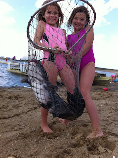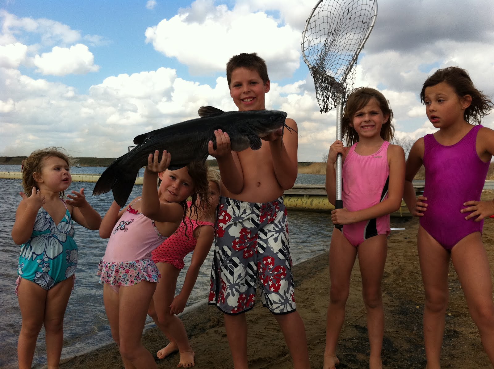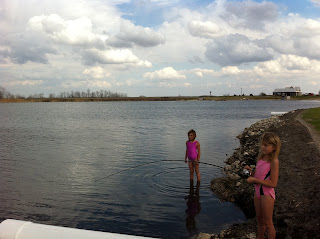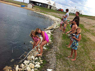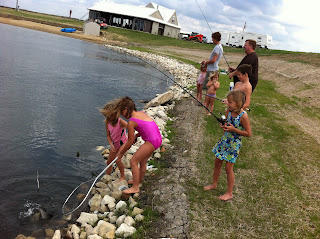 First person to go swimming today was Drake. He was feeding fish off the VIP dock when he leaned over just a bit far and ended up in the lake face first. He's a trooper though, cause after we fished him out he just sat on my lap and continued feeding the fish. He LOVES feeding fish!