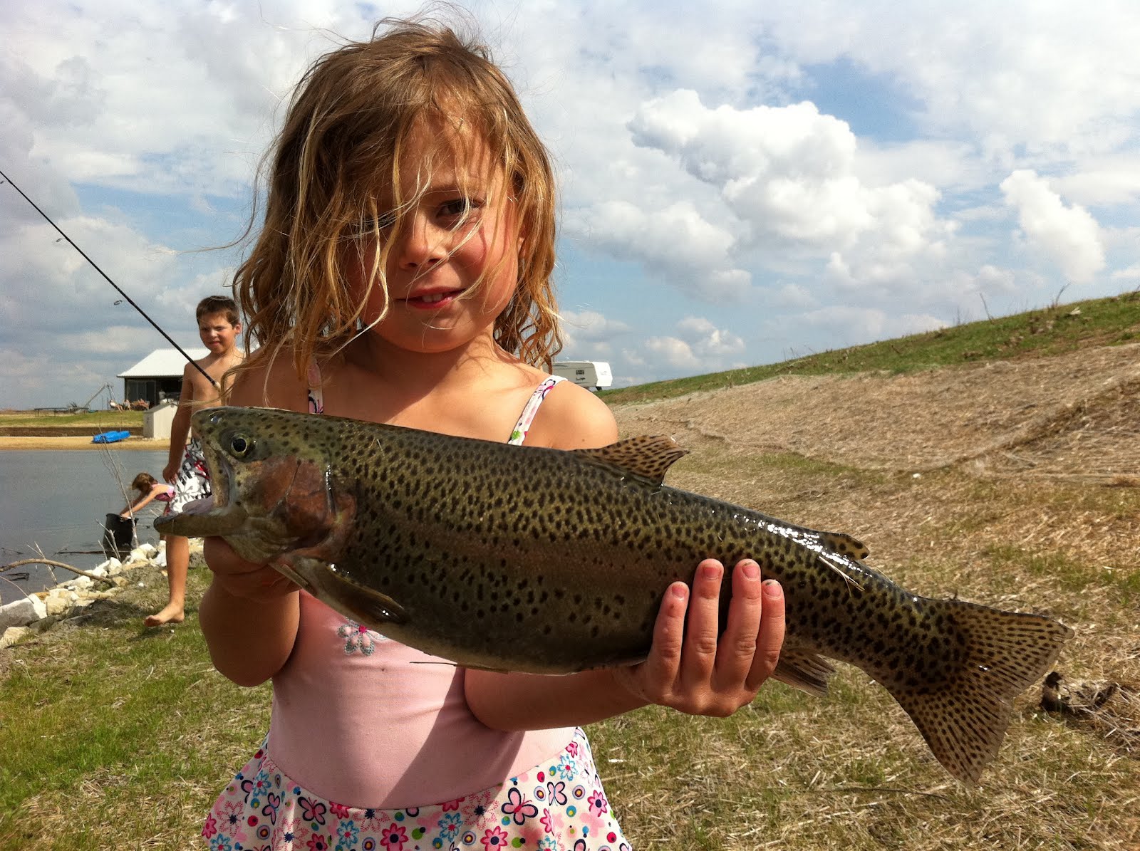 Here are some pics of the kids with some really nice fish. They are going to be fishing like crazy this summer (all by themselves), up and down that whole shoreline!!