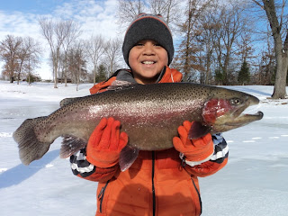 The following week is trout deliveries...I potentially will have quite a few trout available at the end of next week so if your looking for some trophy trout to stock for a bit of fun ice fishing or some snacker sized trout to help feed your trophy bass or push your muskie over 50 inches give me a holler...Im not joking either, the next state record muskie is gonna come from one of our lakes we are annually stocking trout into, I have growth rate data that will blow your mind from pike and muskie eating trout all winter long....This is a 4 year old central illinois rainbow trout fed northern pike: